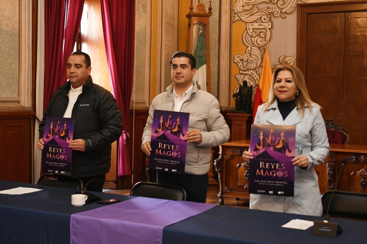 Morelia, Mich., de Enero de 2024.- Este martes se presentó oficialmente el programa de la Cabalgata de los Reyes Magos 2024, evento organizado por iniciativa de la Presidenta Honoraria del DIF Morelia, Paola Delgadillo Hernández, el cual simboliza la esperanza y alegría, especialmente para los niños de Morelia.