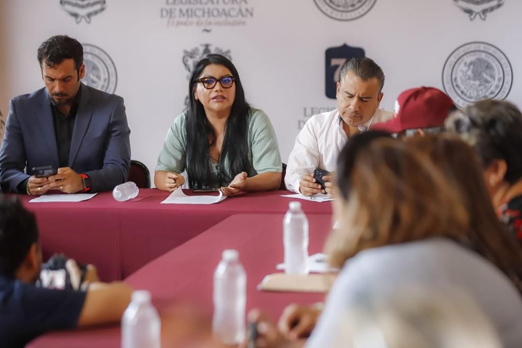 La diputada Brenda Fraga Gutiérrez y los legisladores Fidel Calderón Torreblanca, Felipe de Jesús Contreras Correa y Baltazar Gaona García, este último presidente de la Comisión de Desarrollo Sustentable y Medio Ambiente, escucharon las demandas de los uruapenses que arribaron a la sede de la 75 Legislatura.