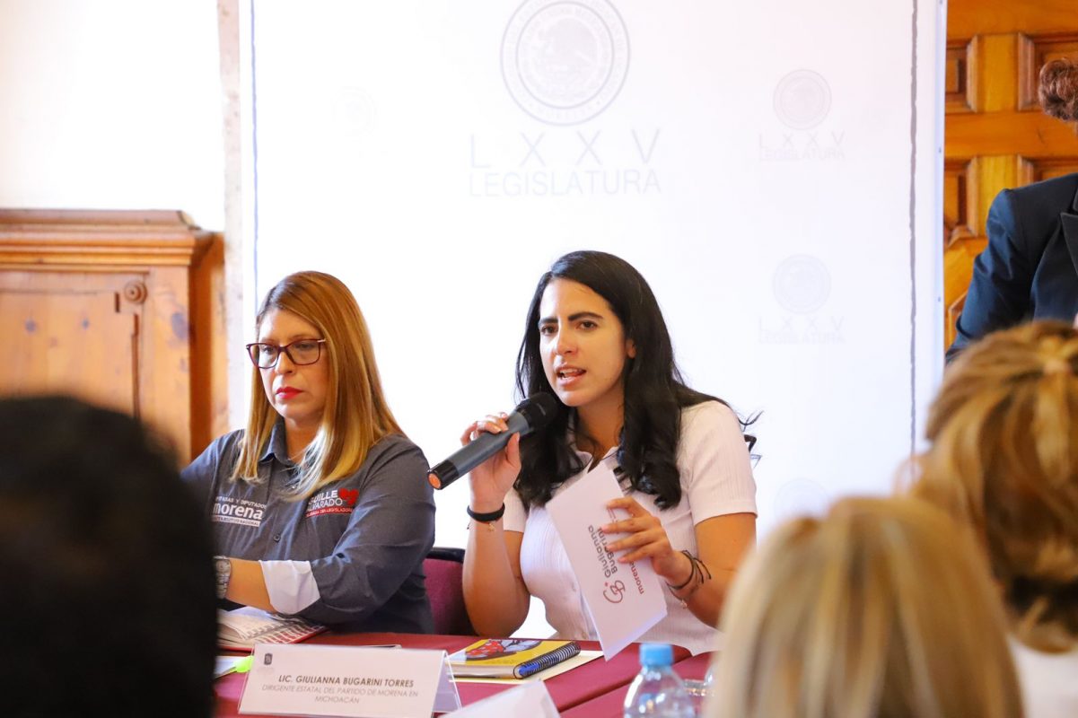 Morelia, Mich., 29 de Abril del 2022.- La dirigente de Morena en Michoacán, Giulianna Bugarini Torres, exhortó a los legisladores locales a no ser cómplices de la corrupción del pasado que tanto daño le hizo a Michoacán.