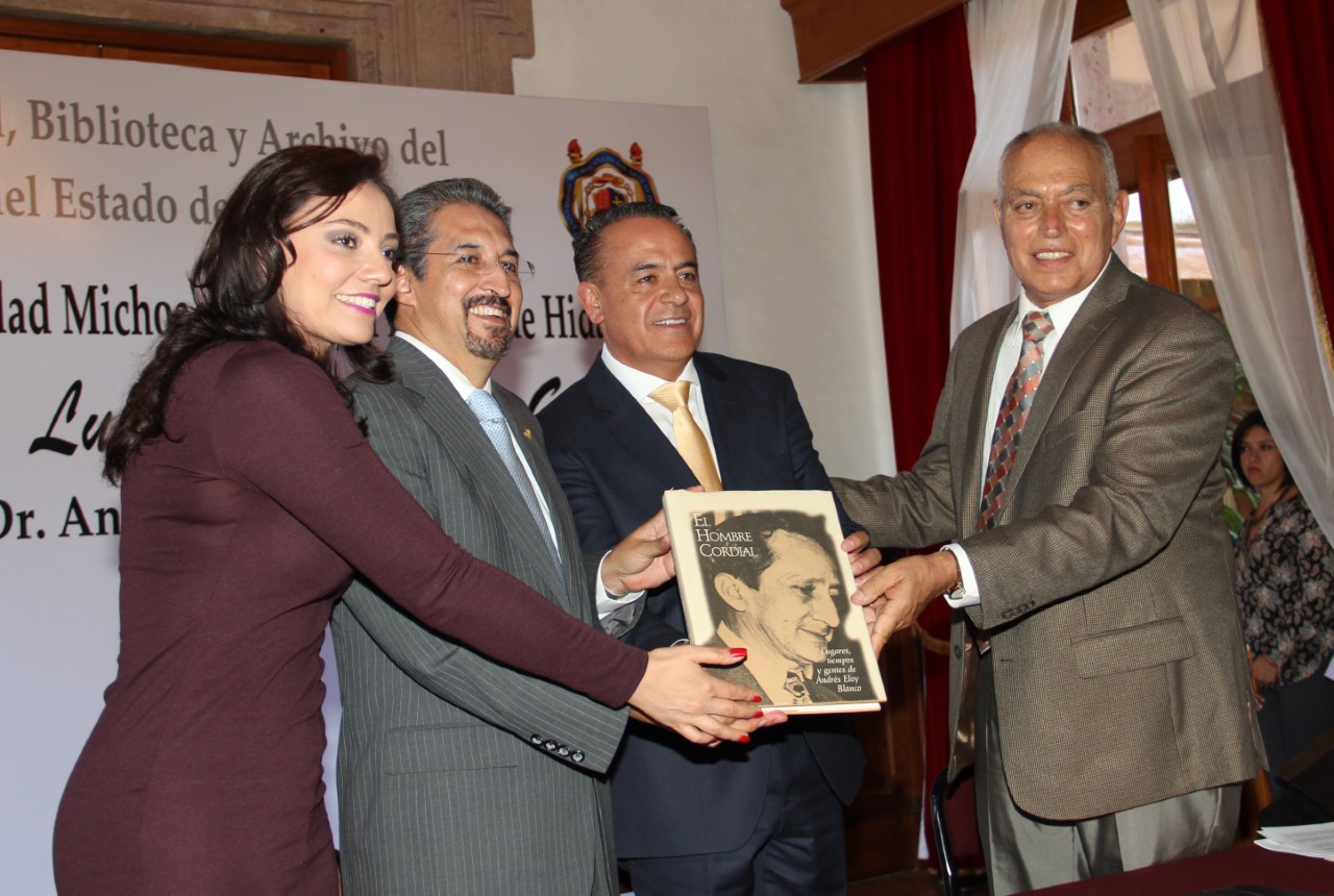 En ese sentido, los diputados Pascual Sígala y Adriana Hernández, presidente e integrante, respectivamente del Comité de Editorial, Biblioteca y Archivo del Congreso del Estado, atestiguaron la entrega de la obra al Dr. Medardo Serna, Rector de la Universidad Michoacana de San Nicolás de Hidalgo (UMSNH), por parte del Ing. Fernando J. J. Peña, en representación del Dr. Luis Felipe Blanco Iturbe, hijo del autor.