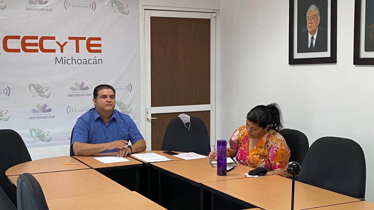 En esta reunión cibernética el titular del CECyTE Michoacán refirió que los directores de los 93 planteles del Colegio están trabajando con su personal docente, directivo y administrativo en la entrega fichas de nuevo ingreso para las y los jóvenes del nivel secundaria que deseen estudiar en el subsistema educativo.