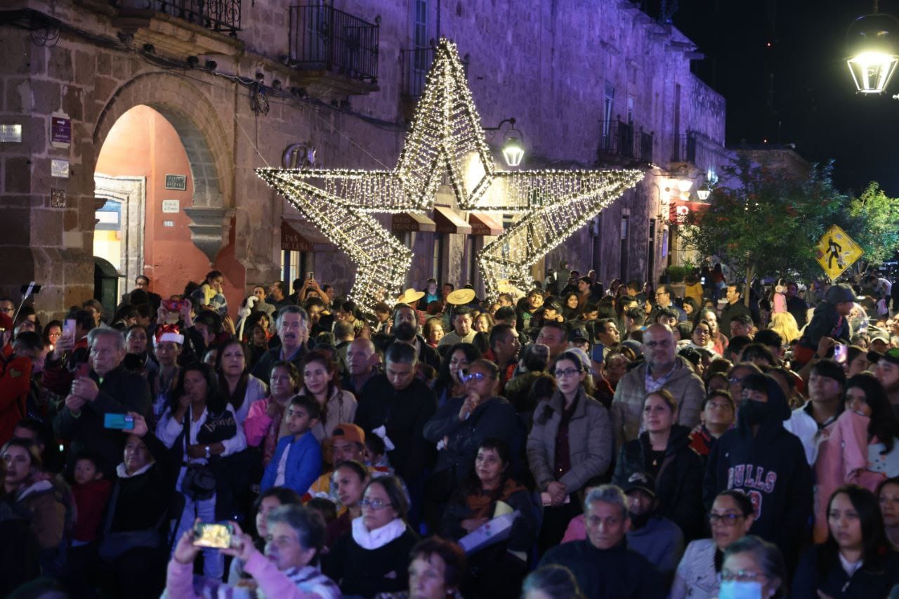 Morelia, Mich., 17 de Diciembre de 2023.- Miles de morelianos y morelianas vivieron un momento mágico durante la segunda Macroposada que organizó el Ayuntamiento y la Arquidiócesis de Morelia, la cual reunió a miles de familias en el Centro Histórico.