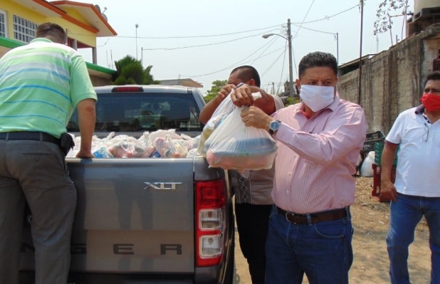 Los recorridos y entrega de los paquetes, realizados bajo las medidas preventivas, como la sana distancia y portando el cubrebocas, los llevó a cabo de la mano de su equipo de trabajo, destacando su suplente, Humberto Soberano Ramírez, y por medio de dos camionetas y un camión de carga.