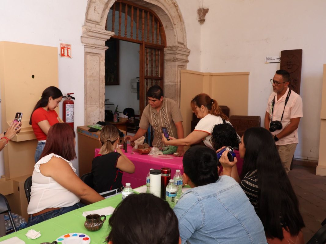 El artesano alfarero de la localidad de Capula, Carlos Ignacio Avalos Ruiz, compartió sus técnicas para la elaboración de catrinas, miniatura, cazuelas y vajillas; manifestó su alegría de poder realizar este tipo de talleres para que más personas conozcan el quehacer artesanal de Michoacán.