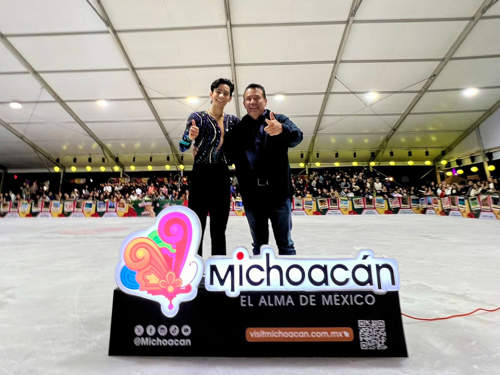 Acompañado por la patinadora artística originaria de Apatzingán, Azalea Contreras, el joven originario de Jalisco, entregó una rutina llena de energía, talento y música que entusiasmó a todos los asistentes al escuchar los temas como “Santa Claus llegó a la ciudad” de Luis Miguel y “Adiós amor” de Juan Gabriel.