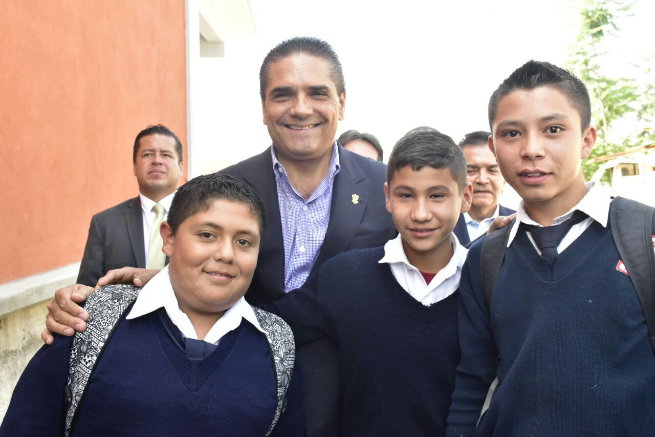 Finalmente, Aureoles Conejo se comprometió a construir tres aulas más, la barda perimetral y la techumbre de la Escuela Secundaria Técnica No. 143.