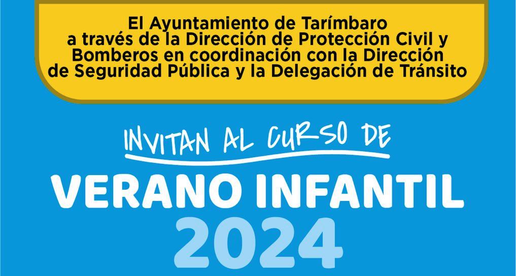 Tarímbaro, Mich., 15 de Julio de 2024.- El Buen Gobierno de Tarímbaro, a través de la Dirección de Protección Civil y Bomberos, en coordinación con la Dirección de Seguridad, invita a todos los niños y niñas tarimbarenses al Curso de Verano Infantil 2024.