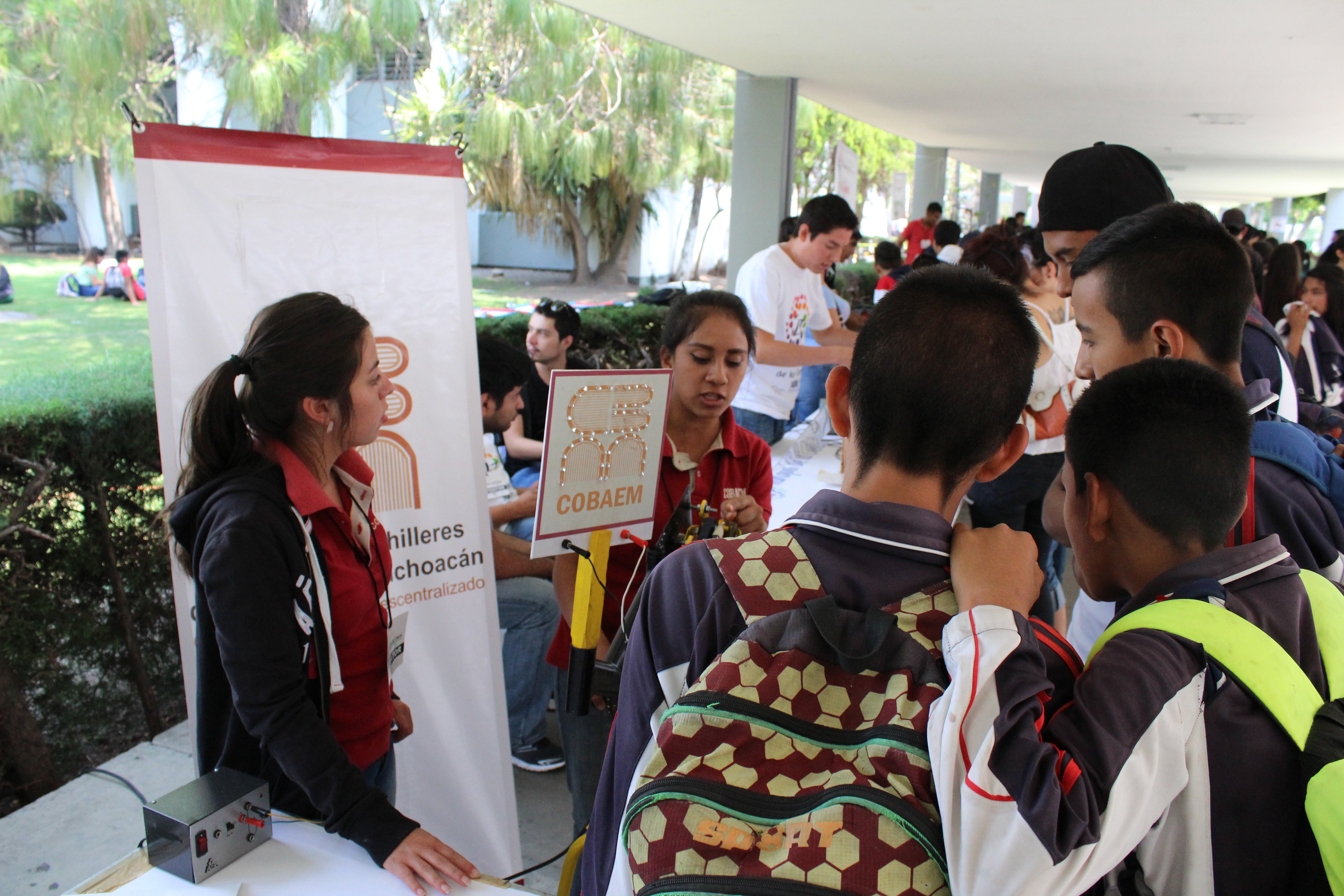 Morelia, Michoacán, a 21 de mayo de 2017.- Los alumnos ganadores del Concurso de Prototipos Didácticos en la XXXII Jornada Académica, Cultural y Deportiva 2016 del Colegio de Bachilleres del Estado de Michoacán (Cobaem), participaron en el Tianguis de la Ciencia organizado por la Universidad Michoacana de San Nicolás de Hidalgo.
