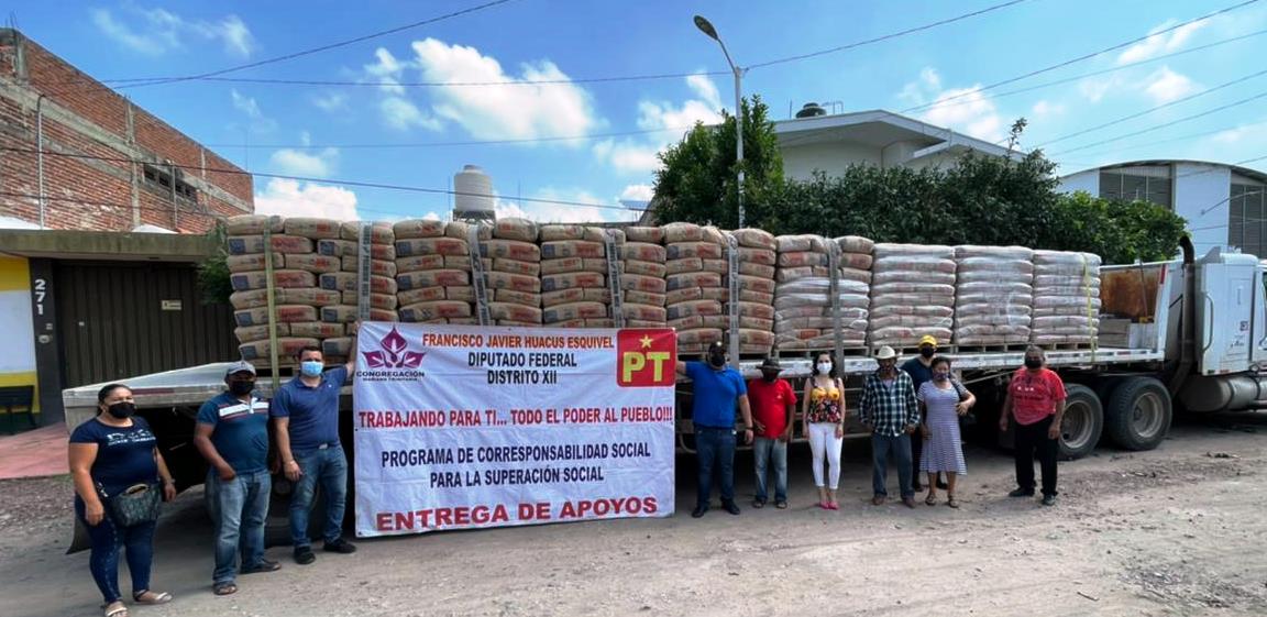 Apatzingán, Mich., a 4 de Agosto del 2021.- Como parte de sus gestiones en favor de diversos sectores de la población, el legislador federal Francisco Huacus Esquivel y la regidora Blanca Álvarez, el pasado inicio de semana dieron cumplimiento a la entrega de varias toneladas de cemento como parte de sus gestiones.
