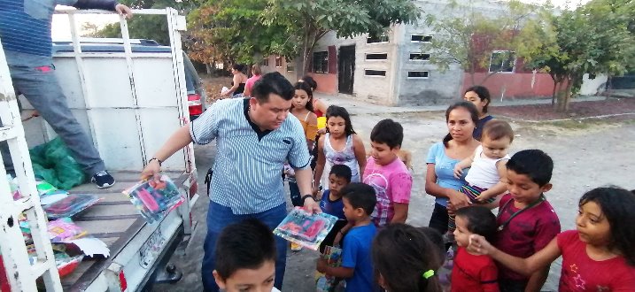 El profesionista y hoy alcalde de esta municipalidad, en esta ocasión no quiso dejar desapercibida su labor social que como ciudadano ha efectuado junto con reconocidas personalidades del municipio como es el caso de Francisco Andrade; Arturo Velázquez; Rodolfo Luviano; Gerardo Álvarez; Crhistian Ramírez y Noé Mariscal.
