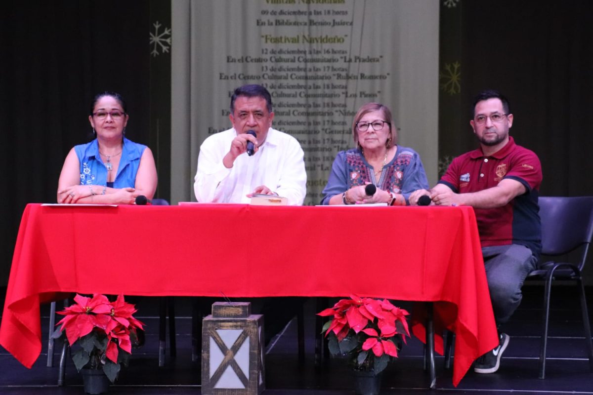 Cabe mencionar que durante la presentación de los eventos navideños estuvo presente la presidenta del DIF, Minerva Guízar Brito; el director del teatro, Liborio Flores; la titular del Centro Cultural La Estación, Dilea Torres, quienes convocaron a la ciudadanía a participar en los eventos navideños que el gobierno municipal tiene preparado.