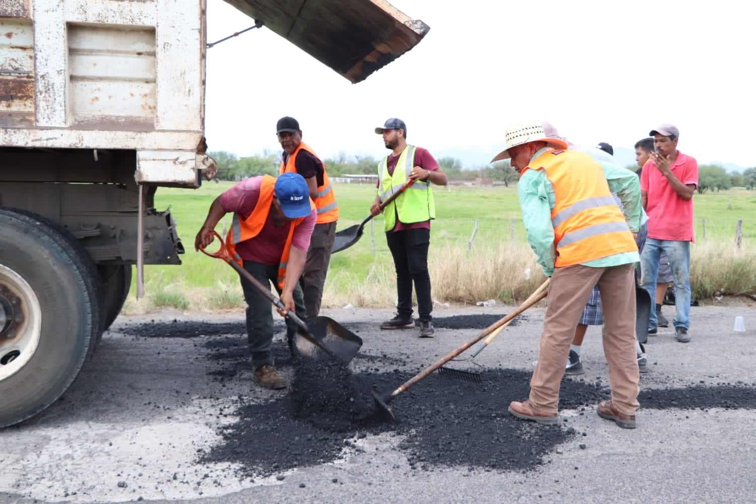 También se trabaja en el bacheo del camino que va de la localidad de Presa del Rosario a Loma de Los Hoyos y del que conduce a la comunidad de Hacienda de la Huerta.