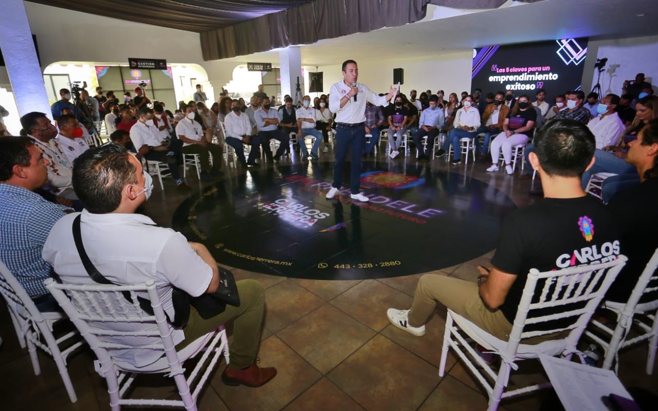 El candidato del Equipo por Michoacán participó como ponente en el foro «Empréndele» con el tema «Cinco claves para un emprendimiento exitoso», bosquejó una agenda de emprendimiento en su proyecto de gobierno y, para ello, selló cinco compromisos para la juventud.