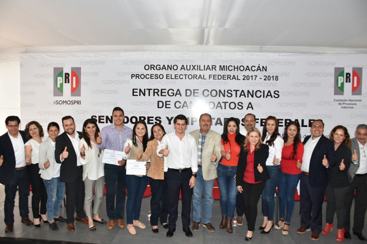 Esta tarde y ante la militancia del priismo en Michoacán recibió su constancia que los acredita como candidatos al Senado: