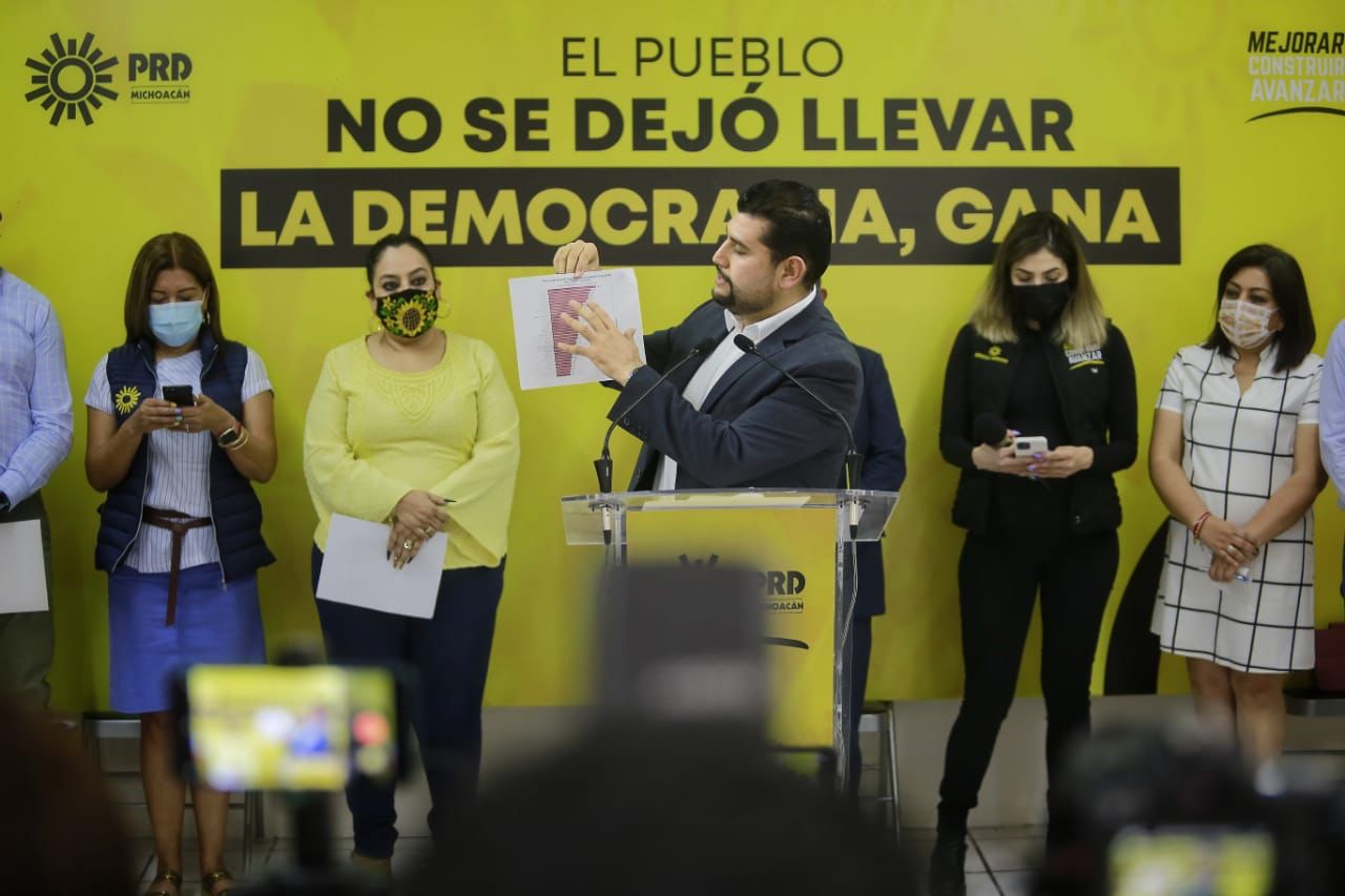 Estuvieron presentes en la Conferencia de Prensa: Brissa Arroyo Martínez, Secretaria de Comunicación Política, Rosario Cruz García, Secretaria Técnica, Irene Cerda Ramos, representante del PRD en el IEM, Helder Valencia Soto, Secretario de Planeación Estratégica y Organización y Luis Manuel Magaña Magaña, Secretario de Asuntos Electorales y Política de Alianzas.