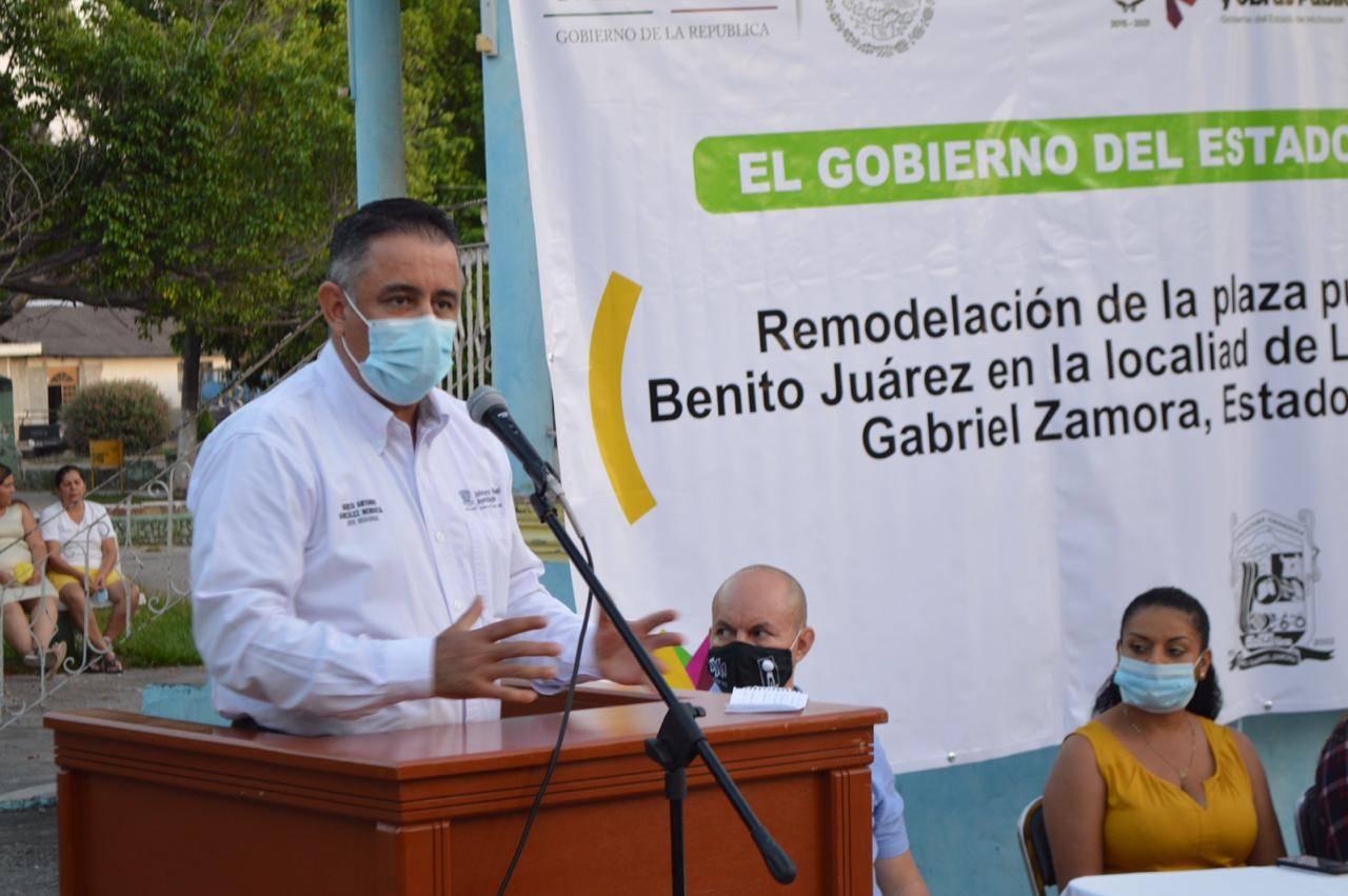 Gabriel Zamora, Mich., a 27 de Diciembre del 2020.,- Con la representación del gobierno de la entidad y bajo la invitación del alcalde Jorge Gutiérrez Sánchez, el titular de la oficina regional del gobierno del estado, Marco Antonio González Mendoza, asistió al arranque de obra en esta municipalidad.