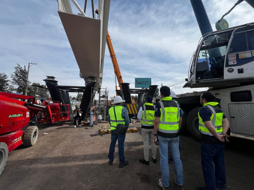 La Secretaría de Comunicaciones y Obras Públicas (SCOP) reportó que la obra, donde se realiza una inversión multianual de 296 millones de pesos, cuenta con un avance del 73 por ciento y que actualmente se lleva a cabo la colocación de 16 trabes metálicas con un peso que aproximado de mil 400 toneladas.