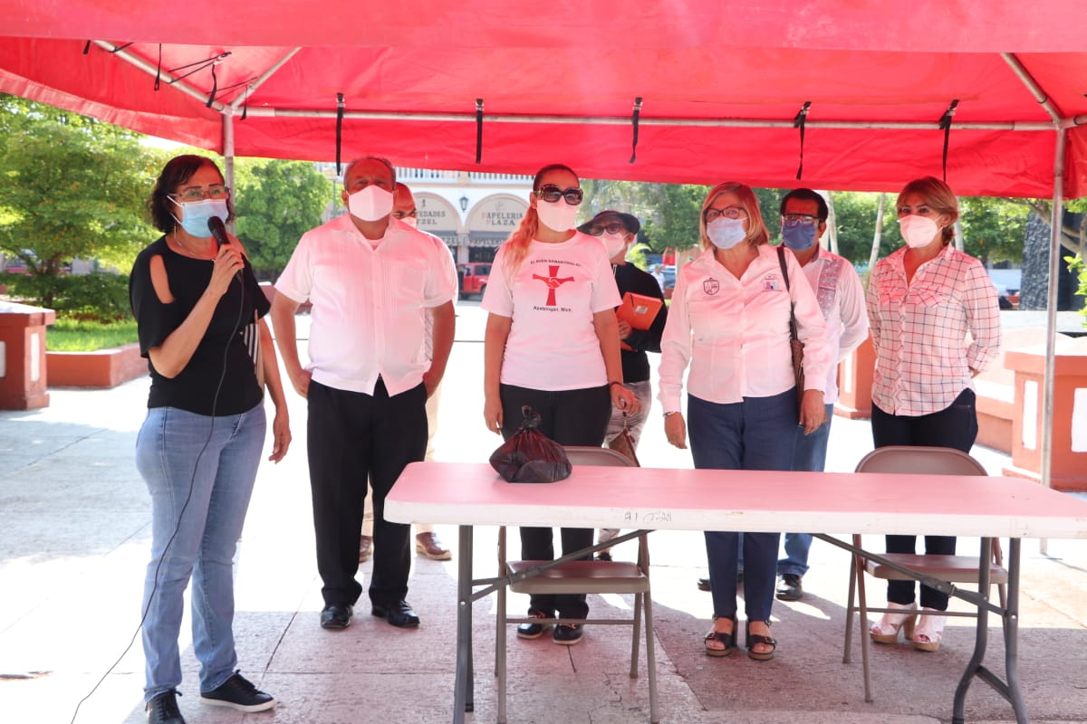 Frente al palacio municipal, la primera dama del municipio, pidió el apoyo de la ciudadanía, para que acerquen alimentos no perecederos, agua embotellada, pañales, toallas sanitarias, artículos de aseo personal y productos de limpieza, mismos que serán donados a las personas refugiadas en el albergue que dirige el padre Gregorio López.