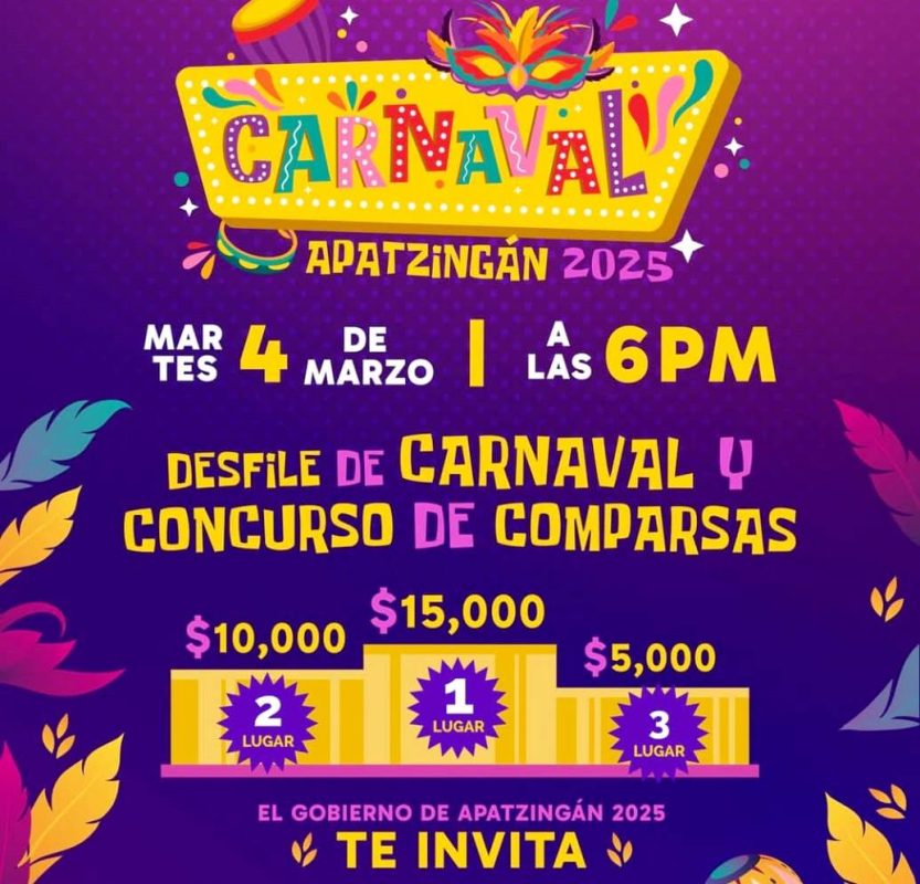 Apatzingán, Mich., a 11 de Febrero del 2025.- A tres semanas de llevarse a cabo el Martes de Carnaval, el gobierno municipal convoca a las instituciones educativas, asociaciones, empresas, grupos independientes y por supuesto a la comunidad LGBTIQ+ a participar en el concurso de Comparsas con premios a los tres primeros lugares.