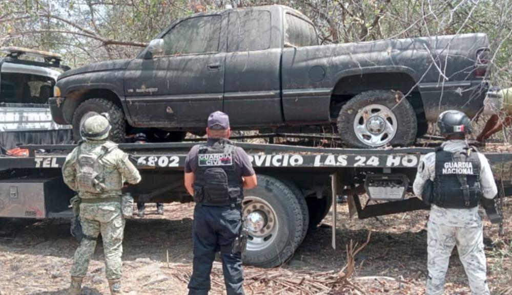 En un momento determinado, visualizaron dos vehículos en aparente estado de abandono, de las marcas Dodge y Nissan; en el primero, detectaron que contaba con piezas artesanales de blindaje, mientras tanto el segundo con reporte de robo vigente. Ambas unidades fueron aseguradas y puestas a disposición de la autoridad correspondiente.