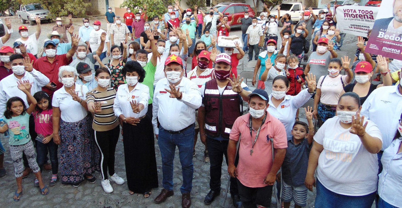 Múgica, Mich., a 6 de  Mayo del 2021.- En el marco de su campaña proselitista en busca de la alcaldía de éste municipio postulado por PT-Morena, el doctor Hugo Wulfrano Andrade López fue recibido por habitantes de la colonia Benito Juárez donde planteó su propuesta de gobierno de llegar a la presidencia con el apoyo de la ciudadanía.