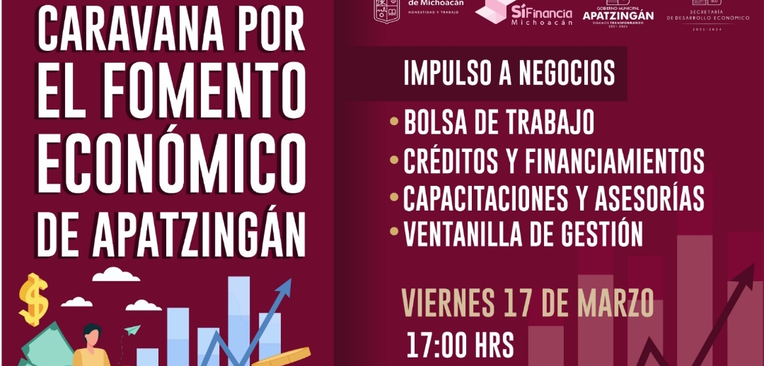 Apatzingán, Mich.- a 16 de Marzo del 2023.- El gobierno municipal a través de la secretaría de Desarrollo Económica lanza el programa “Caravana por el Fomento Económico”, el cual consiste en llevar a las colonias del municipio los servicios y esquemas relacionados con la bolsa de trabajo y los programas para comerciantes y empresas.