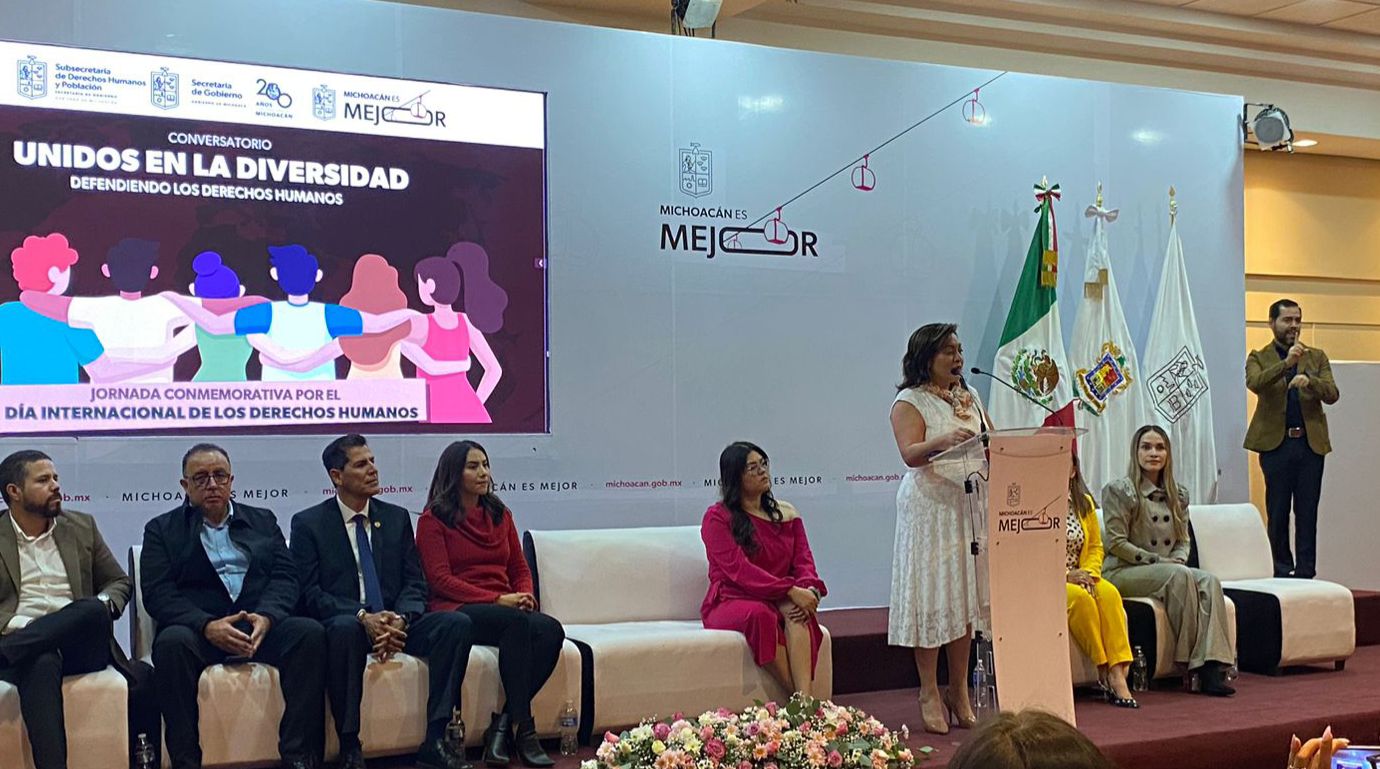 Morelia, Mich., 10 de Diciembre de 2024.- “En Michoacán los derechos humanos se respetan y promueven”, manifestó la subsecretaria de Derechos Humanos y Población de la Secretaría de Gobierno (Segob), Mayra Xiomara Trevizo Guízar, durante el conversatorio Unidos en la Diversidad, Defendiendo los Derechos Humanos.