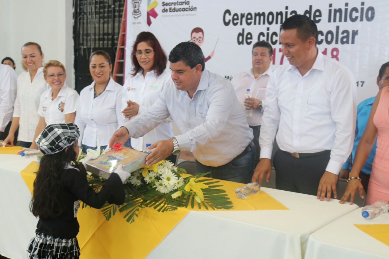 Nueva Italia, Municipio de Múgica, 21 de agosto de 2017.- El Alcalde de Múgica, Salvador Ruiz Ruiz, inauguró de manera oficial el inicio del ciclo escolar 2017-2018 en el municipio, en un evento que se llevó a cabo en el auditorio municipal.