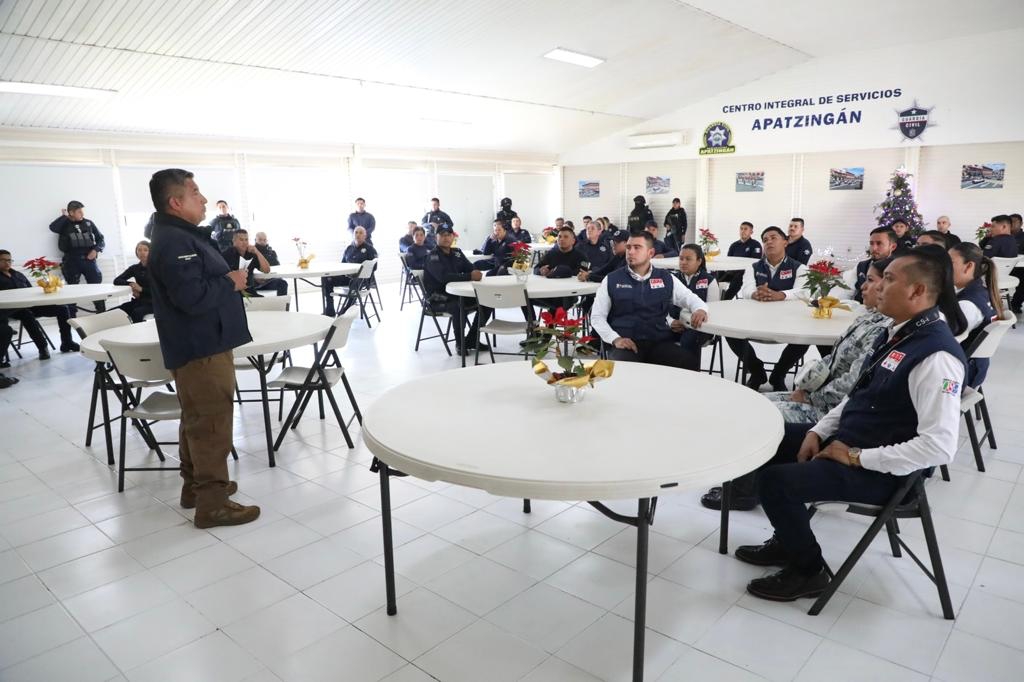 Como primer punto y en solidaridad con el personal destacamentado en la región Apatzingán, el Maestro José Alfredo Ortega Reyes reconoció su esfuerzo y congratuló su gran labor que a lo largo del año ha permitido recuperar la paz de cada uno de los municipios que conforman esta demarcación.