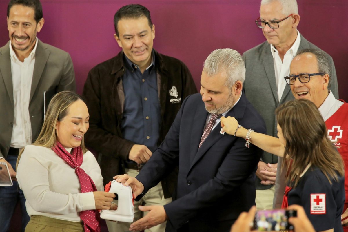 Morelia, Mich., 9 de Octubre de 2023.- Con el lema “Una sola vez no basta, dona”, el gobernador Alfredo Ramírez Bedolla, y la presidenta del Patronato del Sistema DIF Michoacán, Grisel Tello Pimentel, encabezaron la Colecta Anual de la Cruz Roja, la cual culminará el 15 de diciembre de este año.