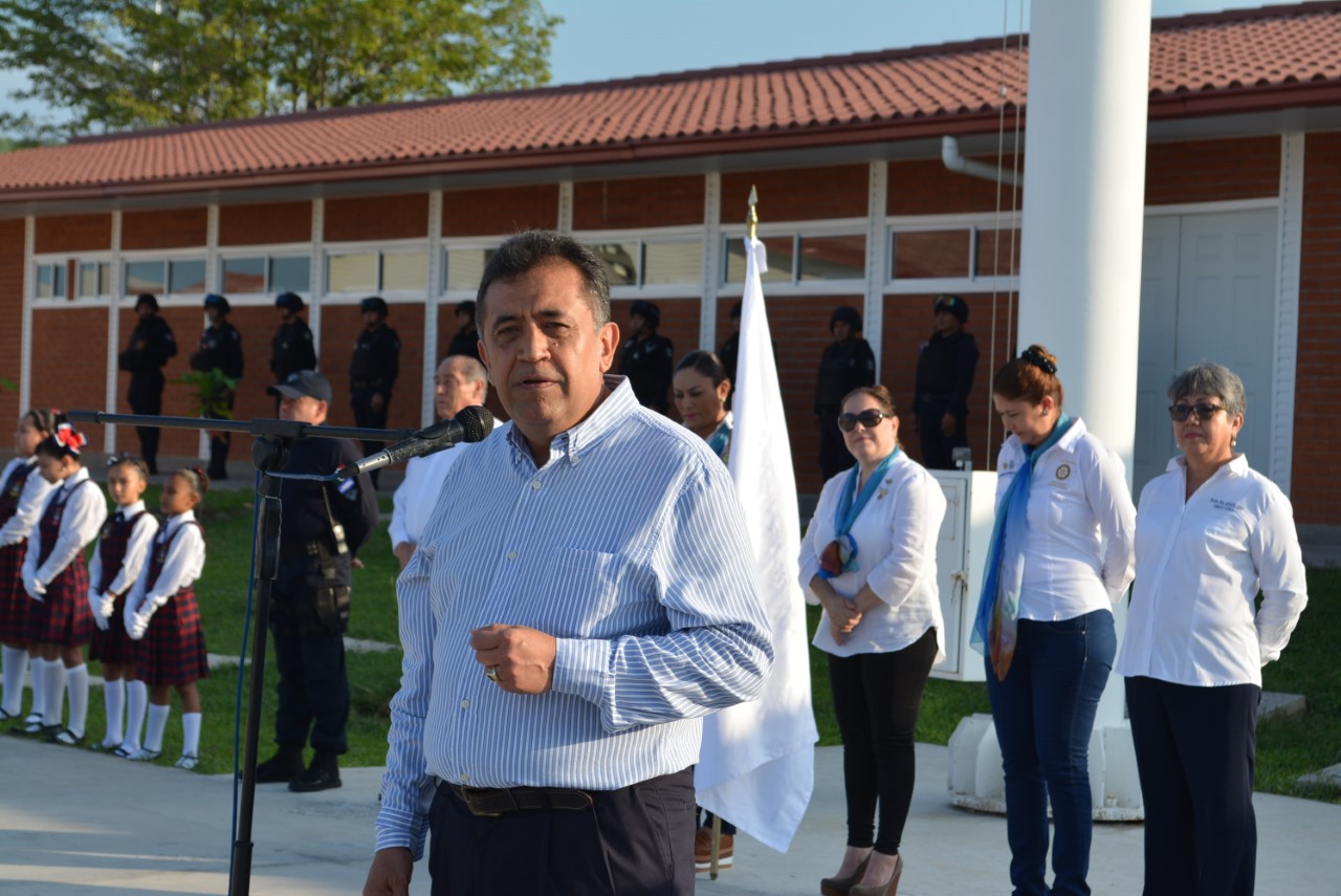 En la explanada del complejo, el presidente Cruz Lucatero, abundó que al celebrar el primer acto cívico le recuerda el importante significado que tiene rendir honores a la bandera como el primer evento de la semana, por ello, reconoció a las autoridades del Complejo de Seguridad Policial, a los integrantes del Club Rotario e instituciones educativas por la organización del acto cívico como parte del programa “Escuelas Comprometidas con tu Seguridad”.