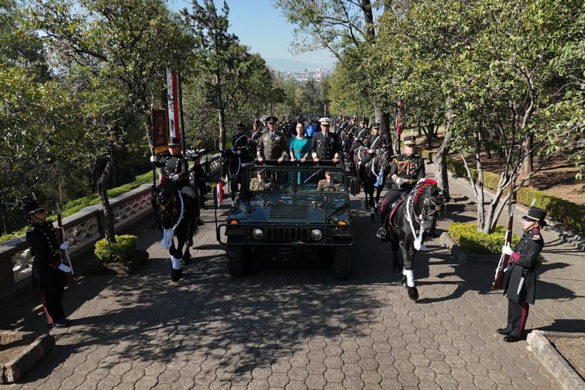 Ciudad de México, a 9 de Febrero de 2025.- La Presidenta de México y Comandanta Suprema de las Fuerzas Armadas, Claudia Sheinbaum Pardo, encabezó la ceremonia por el 112 Aniversario de la Marcha de la Lealtad en el Castillo de Chapultepec.