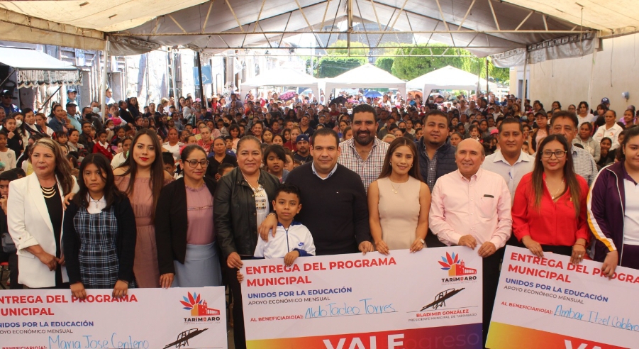 Tarímbaro, Mich., 21 de Marzo de 2023.- El día de hoy se llevó a cabo la entrega del primer apoyo económico a los beneficiarios del programa municipal Unidos por la Educación, en un evento encabezado por el presidente municipal de Tarímbaro, Bladimir González y Aylin Solórzano, presidenta honoraria del DIF Tarímbaro.