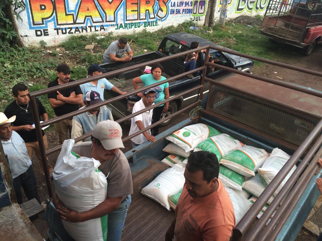 Entrega José Guadalupe Aguilera fertilizante a pobladores de Huiramba y Tzintzuntzan