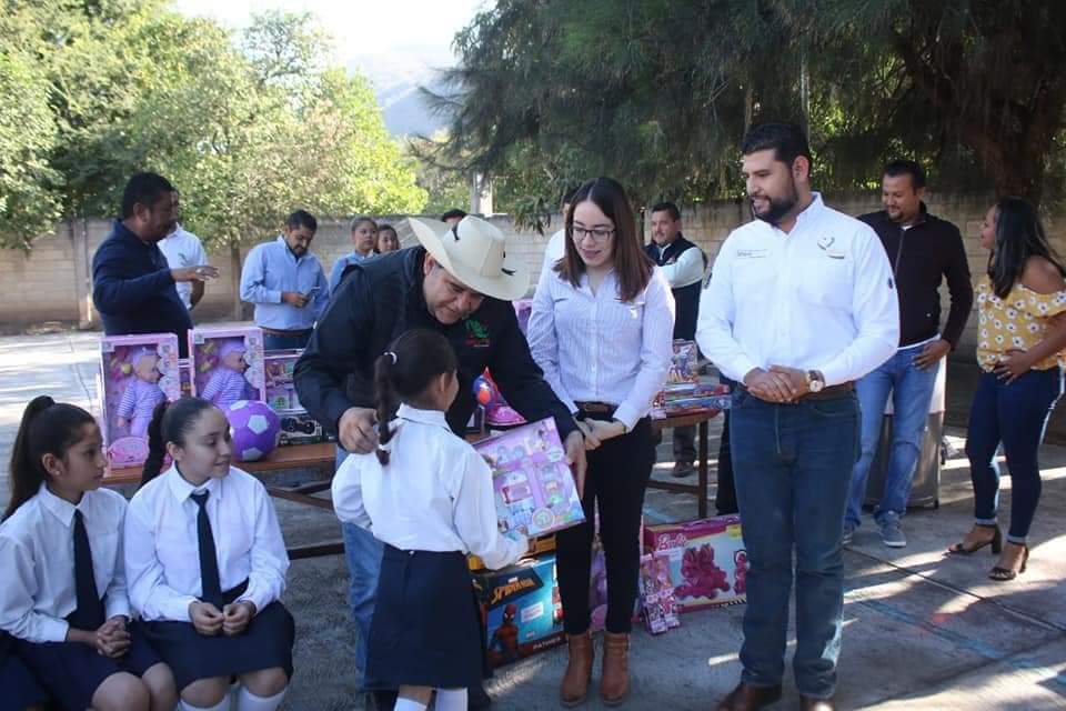 Además de hacer entrega de mobiliario, en la gira de trabajo por diversas localidades de su tierra natal, visitó el Albergue Escolar “José Sixto Verduzco” en el municipio de Tuzantla, donde entregó juguetes a las niñas y niños.