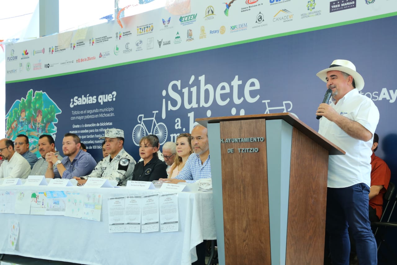 En esta primera fase, 60 niñas y niños de la cabecera municipal de Tzitzio ganaron una bicicleta y recibieron también un casco que garantiza su protección a la hora de desplazarse.