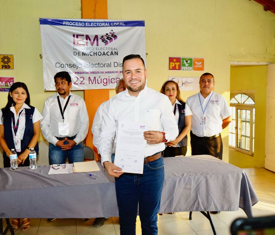 Múgica, Mich., 7 de junio de 2024.- Reyes Galindo Pedraza, recibió este jueves en el Consejo Distrital del Instituto Electoral de Michoacán (IEM) de Múgica, la constancia de mayoría que lo acredita como diputado local electo por el Distrito 22 de Múgica, tras haber resultado ganador el pasado 2 de junio con más de 58 mil votos a su favor.