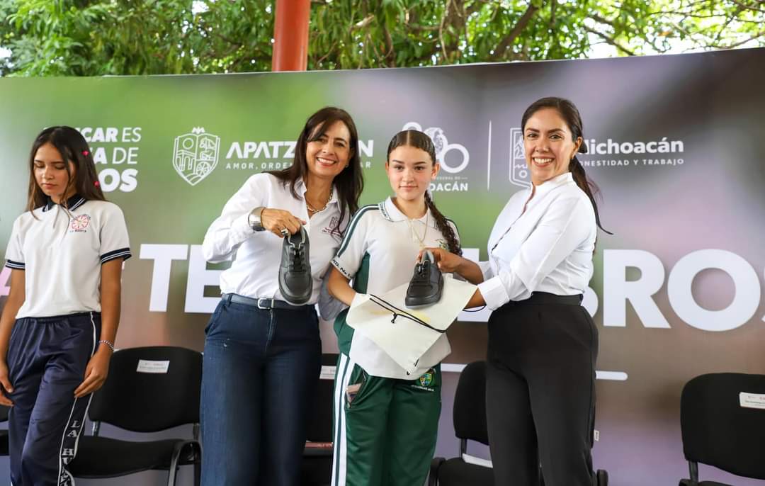Apatzingán Mich., a 03 de Octubre del 2024.- Hoy, la presidenta Fanny Arreola en conjunto con la Secretaría de educación del estado Gaby Molina Aguilar entregaron tennis y libros a los estudiantes de la región, gracias al programa «Jalo a Estudiar» del gobierno de Michoacán. Este esfuerzo busca apoyar la educación y el desarrollo de los jóvenes en la zona.