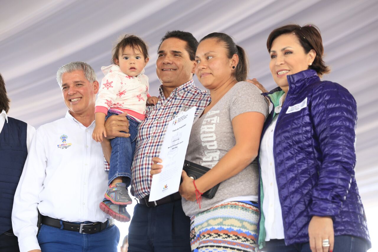 Sahuayo, Mich, a 19 de enero de 2017.- Para el mejoramiento de la calidad de vida de personas de escasos recursos, el Gobernador Constitucional Silvano Aureoles Conejo y la secretaria de Desarrollo Agrario Territorial y Urbano (Sedatu), Rosario Robles Berlanga, entregaron 440 escrituras, 109 Cuartos Adicionales e inauguraron el Centro de Desarrollo Comunitario San Isidro, para lo cual se destinaron 11.7 millones de pesos.