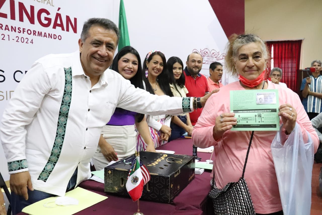 Apatzingán, Mich.- 31 de Julio del 2022.- El presidente municipal, José Luis Cruz Lucatero y la titular de la Secretaría del Migrante, Brenda Fabiola Fraga Gutiérrez, entregaron las primeras 34 visas de turista a personas adultas mayores que forman parte del programa Reencuentro Familiar (Refami), quienes acudirán en próximas semanas a visitar a sus familiares, especialmente hijos en Estados Unidos