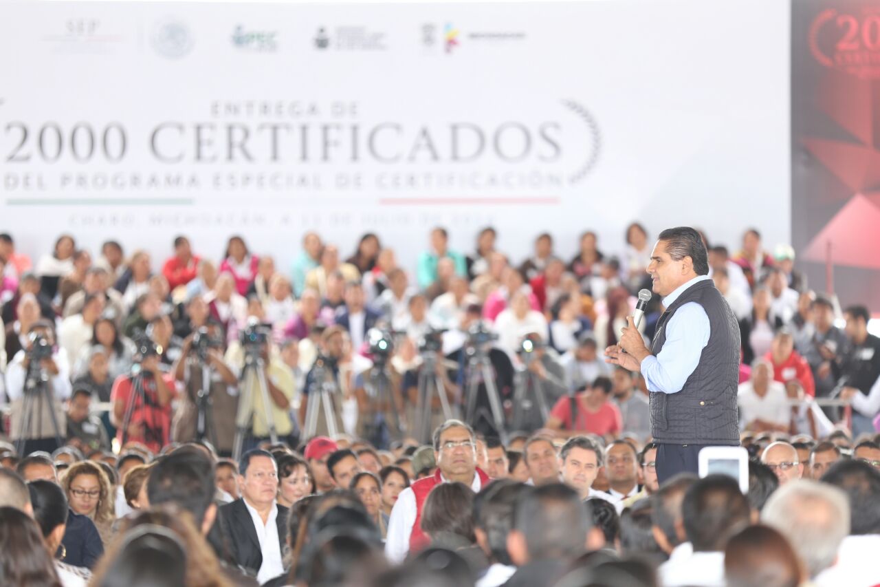 En el evento, al que también asistió el director general del INEA, Héctor Mauricio López Velázquez, se hizo entrega de certificados a más de mil 200 personas que concluyeron su primaria y a cerca de 800 michoacanas y michoacanos que terminaron su secundaria, en este marco, el funcionario federal hizo un reconocimiento al mandatario Silvano Aureoles, al referir que la entidad fue una de las primeras en signar un convenio con el Instituto, y además invertirle recurso para abatir el rezago educativo.