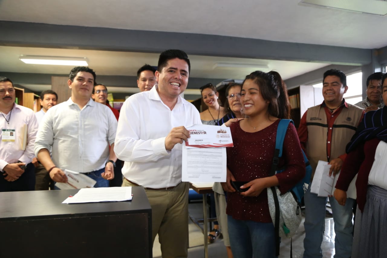 Cherán, Michoacán a 17 de junio de 2019.- En cumplimiento del compromiso que hizo el Presidente de México, Andrés Manuel López Obrador, con la educación pública, la delegación de la Secretaría del Bienestar en Michoacán realizó una nueva entrega de tarjetas del programa Jóvenes Escribiendo el Futuro a estudiantes de las escuelas normales de Tiripetío y Cherán.