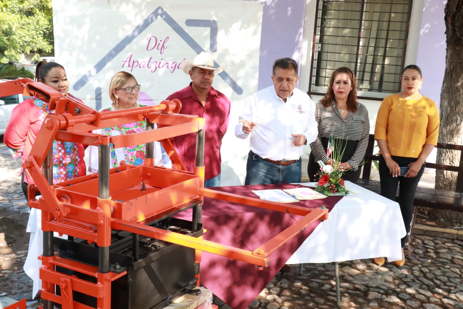 Apatzingán, Mich., a 15 de Diciembre del 2022.- El gobierno municipal a través del Sistema para el Desarrollo Integral de la Familia, entregó maquinaria para la elaboración de huarache y vibro bloquerá con la que los grupos de proyectos productivos podrán fabricar tabique para la comunidad de San José Nuevo.