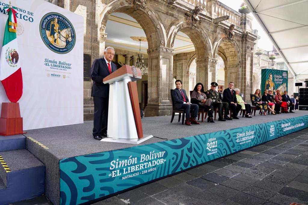 El presidente destacó el ejemplo de Simón Bolívar por su formación humanista, aun cuando perteneció a una familia acomodada; recordó su vocación militar y perfil de político con vocación y voluntad transformadora que, a los 22 años, juró liberar a los pueblos hispanos de la tutela española.