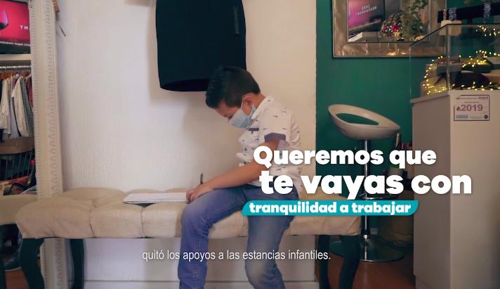 “Sabemos que para ti ha sido difícil desde que el gobierno federal quitó los apoyos a las estancias infantiles. Que tus hijos e hijas merecen estar en buenas manos”, señala el video realizado por la Coordinación General de Comunicación Social.
