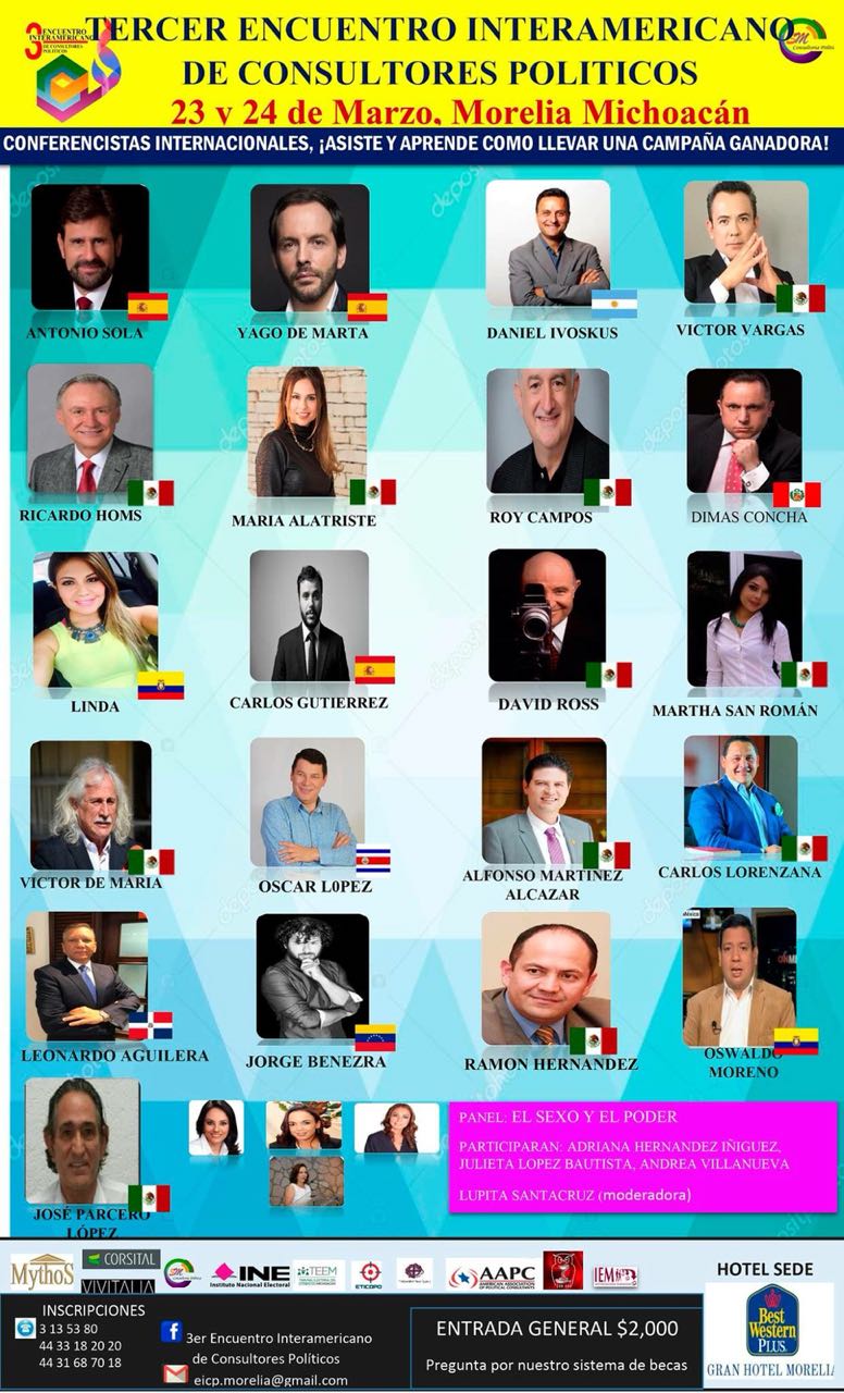 Morelia, Michoacán a 19 de marzo del 2018. Será este 23 y 24 de Marzo cuando Morelia sea sede del Tercer Encuentro Interamericano de Consultores Políticos.