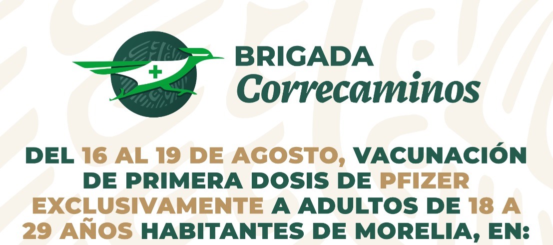 Es importante aclarar que en esta jornada solo se aplicarán primeras dosis de Pfizer-BioNTech a personas de 18 a 29 años y mujeres embarazadas habitantes del municipio de Morelia.