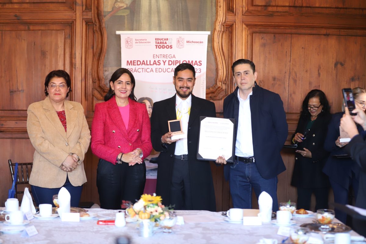 Morelia, Mich., 21 de Diciembre de 2023.- Con un creativo proyecto que basa el aprendizaje en los juegos, Alan Rodrigo Álvarez Cruz, fue uno de los ganadores del Premio Nacional a la Práctica Educativa 2023; es licenciado en Educación Primaria por la Benemérita y Centenaria Escuela Normal Urbana Federal Prof. J. Jesús Romero Flores.