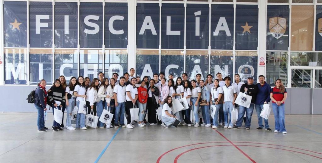 Morelia, Mich., a 16 de marzo de 2023.- Con el objetivo que el sector estudiantil de la entidad, vean como una aliada en su formación académica, a la Fiscalía General del Estado (FGE), además que puedan conocer el funcionamiento y áreas especializadas con las que cuenta la institución, estudiantes de la preparatoria La Salle Vasco de Quiroga, plantel La Piedad, realizaron una visita guiada en la institución.