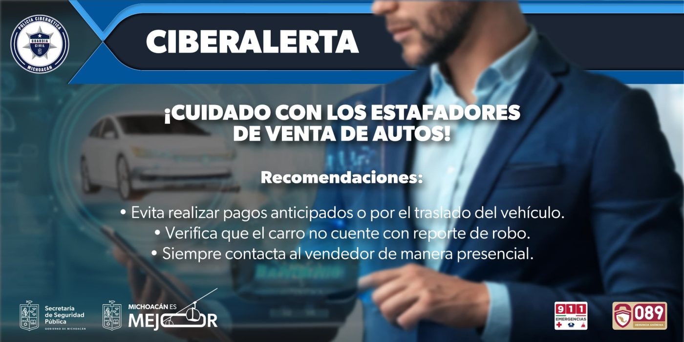 Morelia, Mich., 8 de Enero de 2025.- Si estás por comprar un vehículo y realizas búsquedas por internet o redes sociales, sigue estas recomendaciones de la Secretaría de Seguridad Pública (SSP) para evitar que seas víctima de fraude.